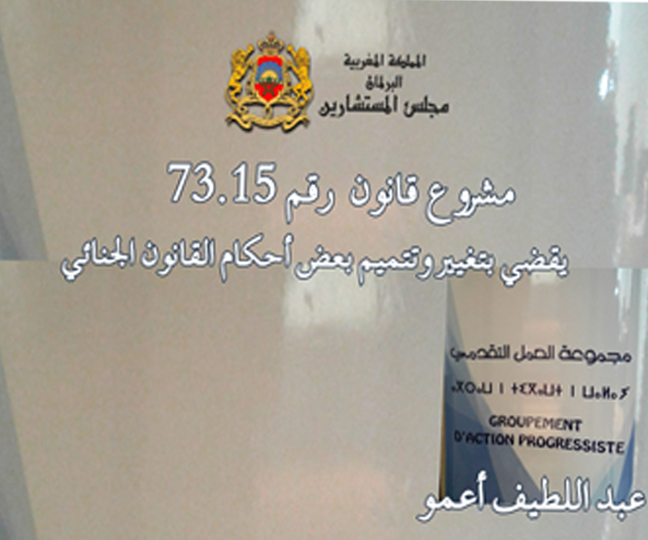مشروع قانون رقم 73.15 يقضي بتغيير وتتميم بعض أحكام مجموعة القانون الجنائي.