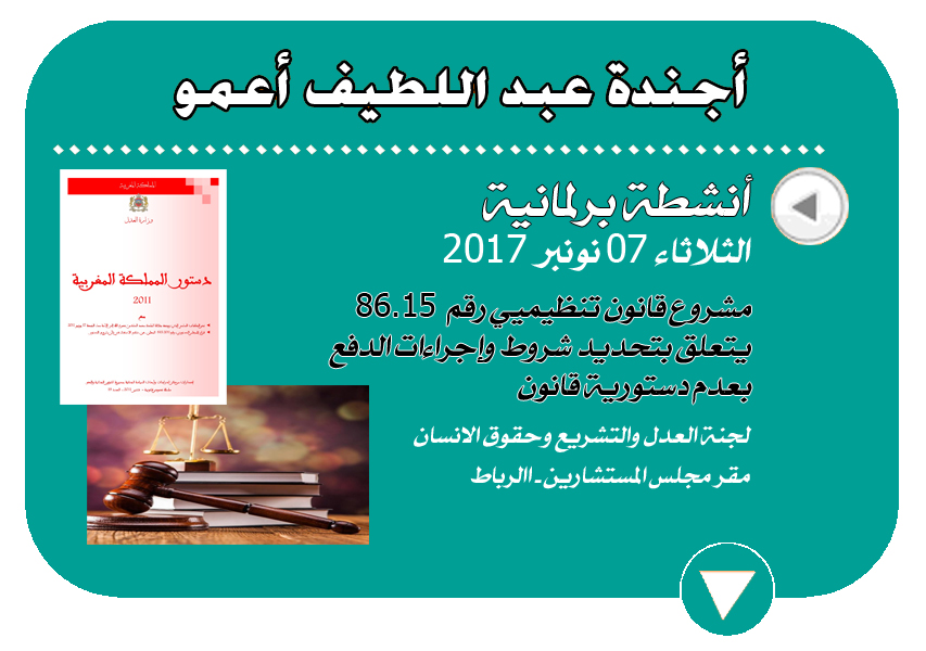 أجندة أعمو عبد اللطيف البرلمانية (بداية نونبر 2017)